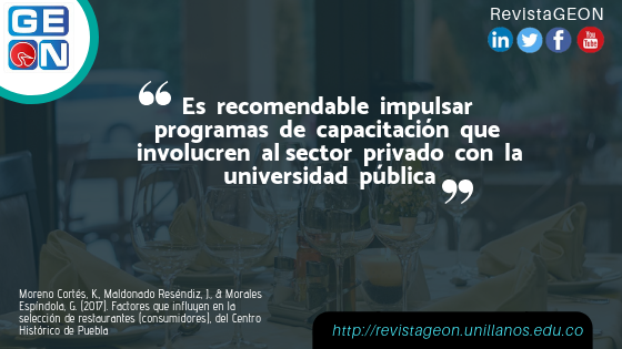 Factors that influence the selection of restaurants (consumers), from the historic center of Puebla