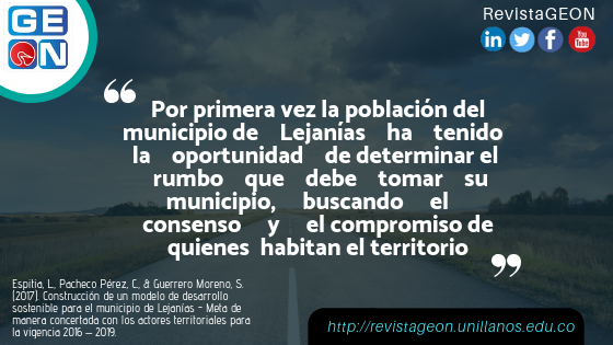 Construction of a sustainable development model for the municipality of Lejanías - Goal in a concerted way with the territorial actors for the 2016 - 2019