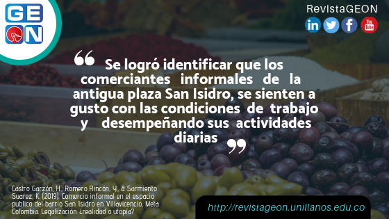 Informal commerce in the public space of the San Isidro neighborhood in the city of Villavicencio, Colombia: Formalization: reality or utopia?