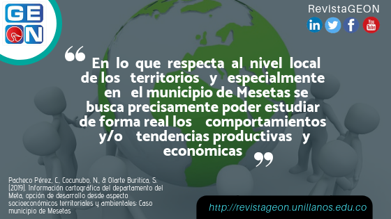 Cartographic information of the Meta Department development option from socioeconomic territorial and enviromental aspects: Case municipio Mesetas